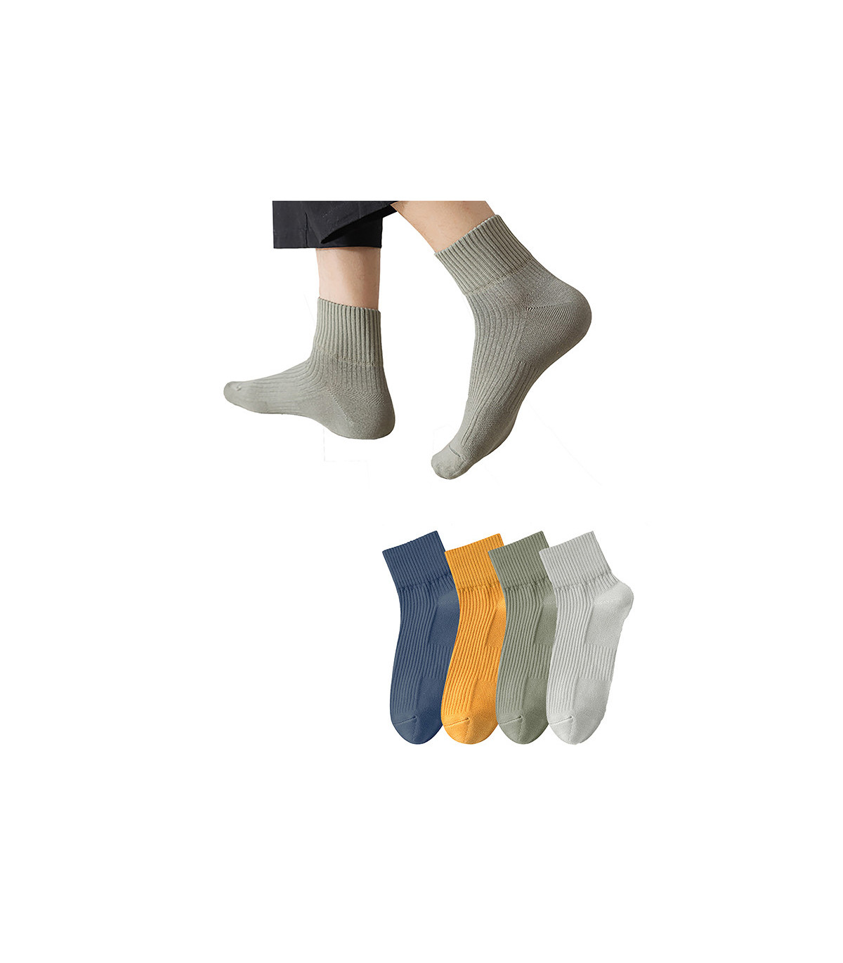 Pack includes two pairs of socks in each color: blue, mustard, bottle green, and gray.