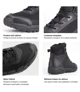 Equipadas con cremalleras YKK y cierre autoadherente de alta resistencia, garantizan un ajuste seguro y de fácil manejo, mientras que los ojales reforzados mejoran la durabilidad frente al desgaste diario.