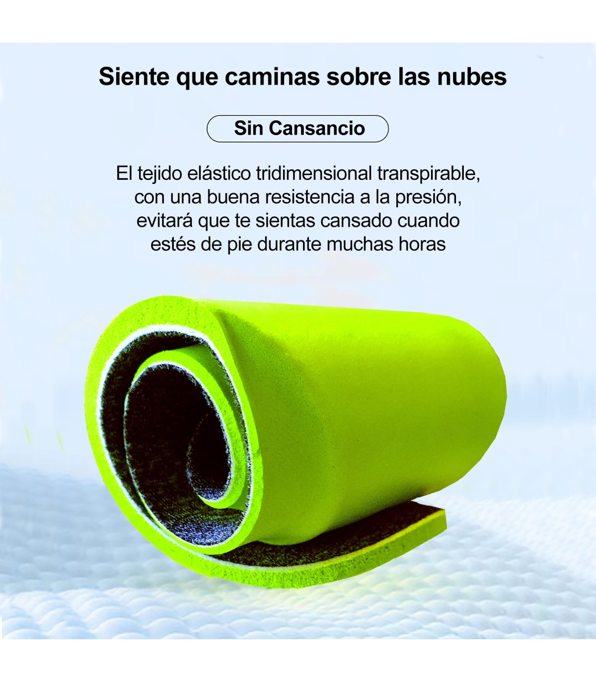 Binnenin 3D thermo-gevormde PU inlegzool, ademend, antibacterieel en geurwerend, verbetert demping door aanpassing aan tred en verlicht druk en spanning in voeten en benen. Wasbaar en snel drogend voor eenvoudige onderhoud.
