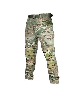 - Ajuste: cintura elástica en los laterales para comodidad extendida, cierre delantero con botón y cremallera, presillas reforzadas con bucles para pequeño material táctico.