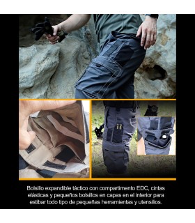 - Diseño ergonómico: incorporan un panel de fuelle en la entrepierna que reduce la tensión en las costuras y mejora la movilidad. Perfectos para movimientos amplios, propios de tareas tácticas o deportivas.